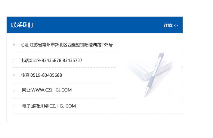地址:常州市新北區友邦商務大廈1幢16、17層  電話:0519-85101652  傳真:0519-85112595  郵編:213022  網址:www_cz-jiayue_cn.hdhqdj.com  郵箱:xiajifengaa@163.com